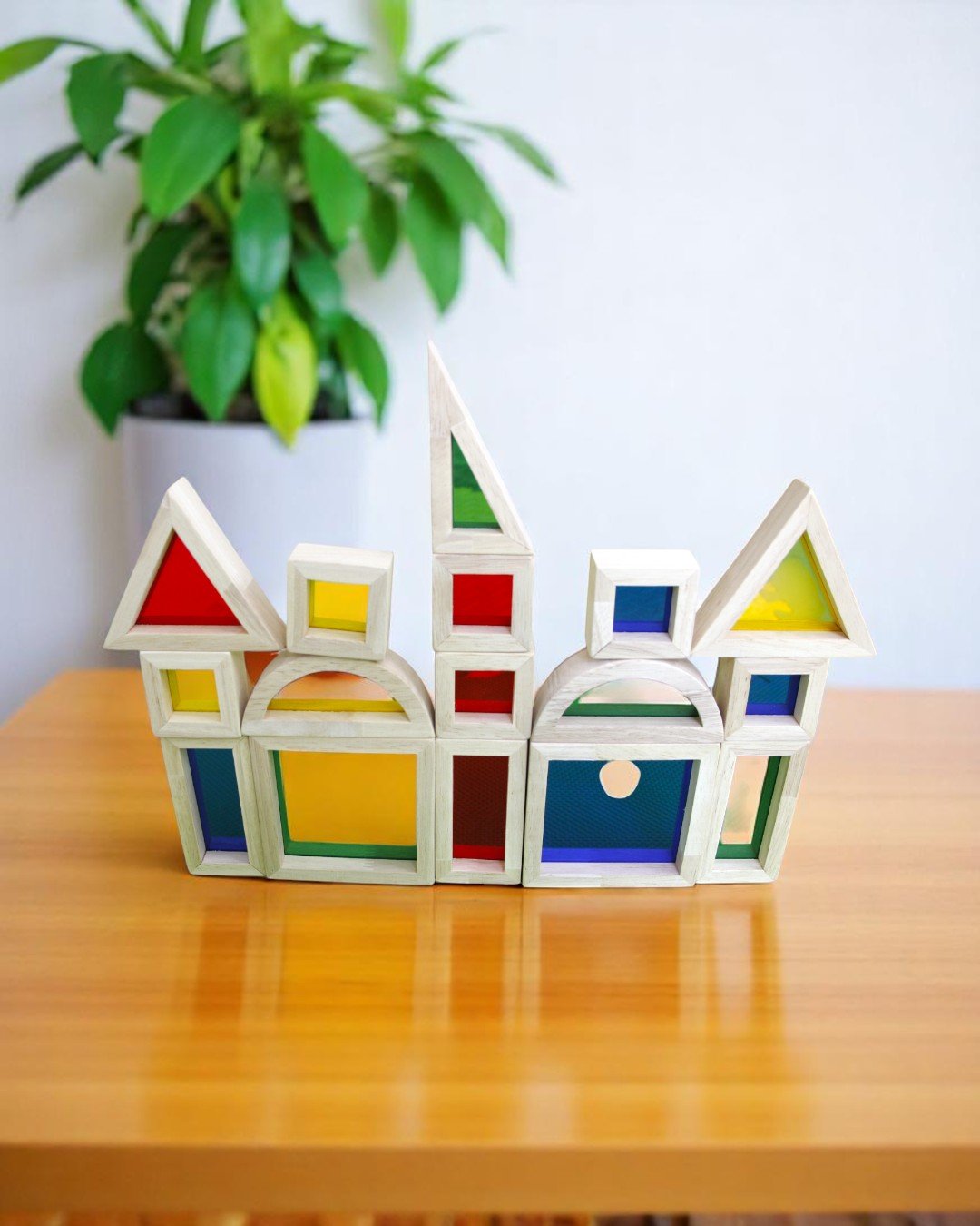 Bring a burst of colour and wonder to playtime with Kaleidoscope Blocks – a magical twist on classic building fun! These vibrant blocks do not just stack and balance—they add a colourful dimension of light to every creation, turning ordinary structures into glowing works of art. As children experiment with colour, they will love looking through the translucent panels to discover new shades of the spectrum, learning how colours blend and change in the most hands-on, exciting way. Whether they are constructing a castle that catches the sunlight or a tower that gleams with rainbow hues, kids sharpen their shape and colour perception while enjoying the freedom of open-ended play. Each building session is guided entirely by imagination, encouraging creative thinking as they design dazzling structures that are as unique as they are. With Kaleidoscope Blocks, learning meets wonder, and every block becomes a bright opportunity to explore, discover, and dream in colour!