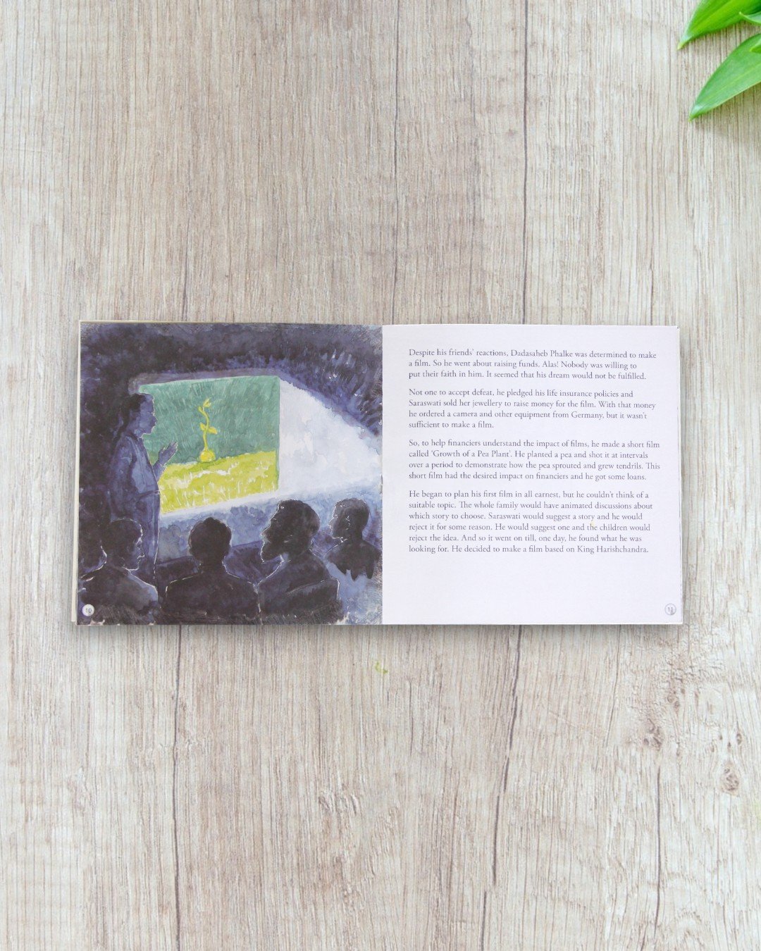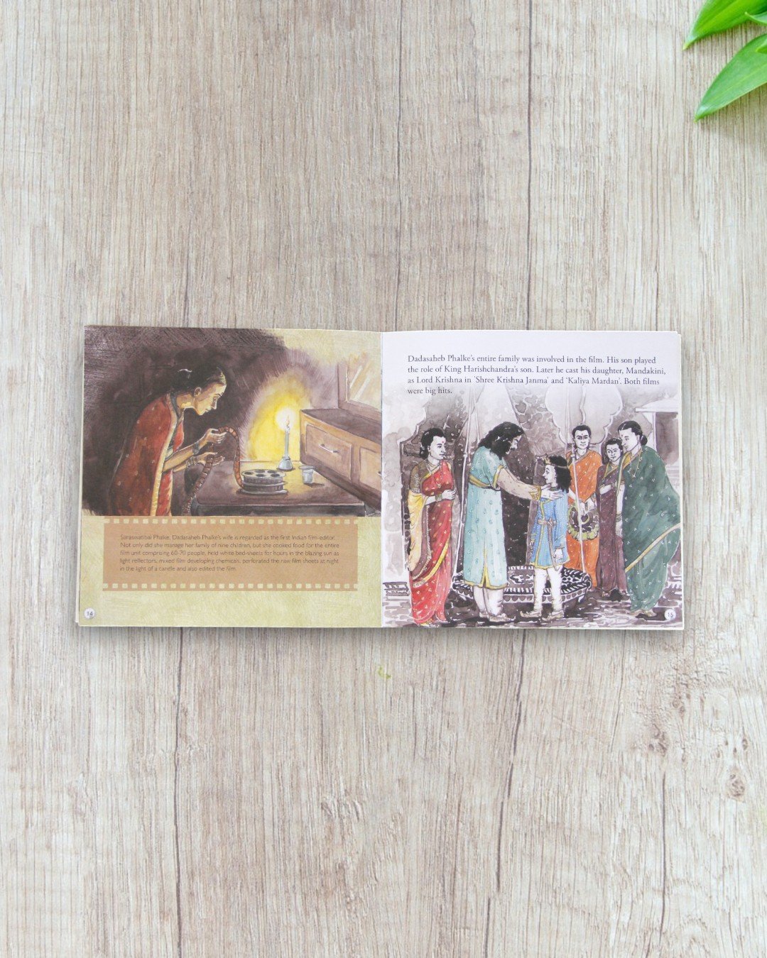 Set in early 20th-century India, the book paints a vivid picture of Phalke’s passion for storytelling and his pioneering efforts in filmmaking. It delves into the challenges he faced, including financial constraints and societal skepticism, as he ventured into uncharted territory to bring moving pictures to Indian audiences. A notable aspect of the story is the emphasis on the collaborative efforts behind the scenes, highlighting contributions from unexpected individuals, such as a cook who portrayed a female character and Phalke’s wife, Saraswatibai, who played a pivotal role in the filmmaking process. Recommended age – 8+ Years