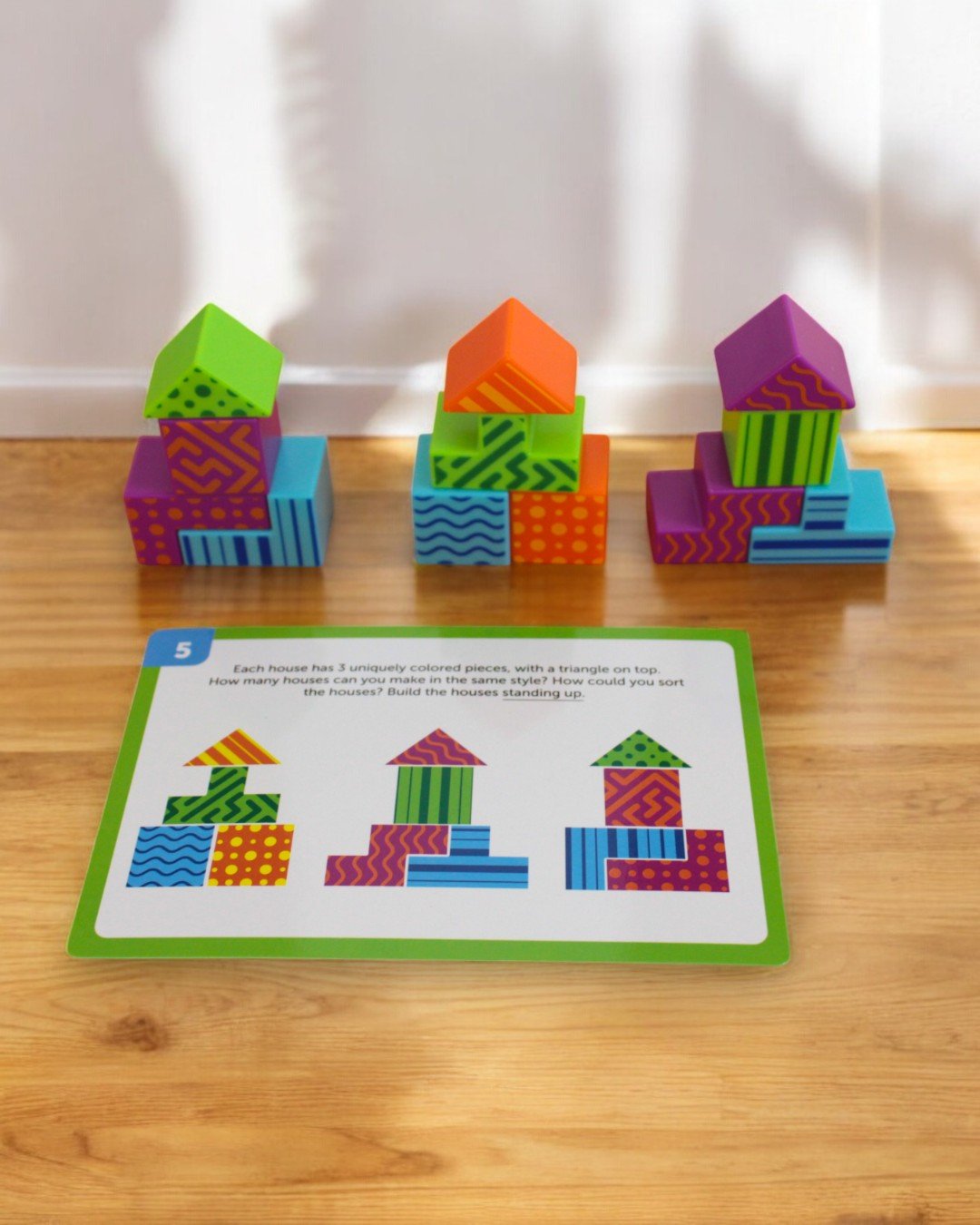 The Mental Blox game offers a vibrant and interactive way for children to develop higher-order thinking skills using colourful, three-dimensional blocks and engaging activity cards. As children work to replicate or create patterns, structures, and visual arrangements, they strengthen critical thinking by analysing and interpreting visual cues to solve challenges. The act of stacking, arranging, and manipulating blocks fosters spatial reasoning, helping children understand how shapes relate to one another in space. By following the visual instructions on the challenge cards, they practice following directions while simultaneously sharpening their visual perception and attention to detail. The game encourages problem-solving as children determine which pieces fit where and how to build stable structures based on the clues provided. When played in groups, it supports collaborative learning, as children explain their reasoning, take turns, and work together to complete tasks, promoting strong communication skills. Additionally, the tactile nature of the blocks promotes fine motor development and hand-eye coordination. With its open-ended challenges and multiple levels of difficulty, Mental Blox combines playful exploration with meaningful learning, making it a powerful tool for both fun and cognitive growth.