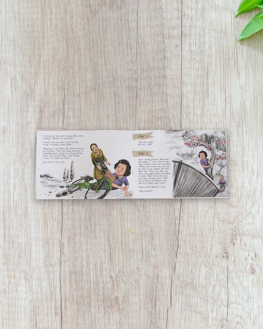 Noorain is determined to learn how to ride a bicycle so she can win a race against her best friend, Wasim. Her mission, however, becomes complicated when a curfew is imposed in her city due to escalating conflict. With her best friend away and the streets deserted, Noorain navigates her emotions and circumstances, finding solace and support in her family, especially her grandparents. The story beautifully captures her resilience and the warmth of familial bonds during challenging times. Recommended age – 7 + years