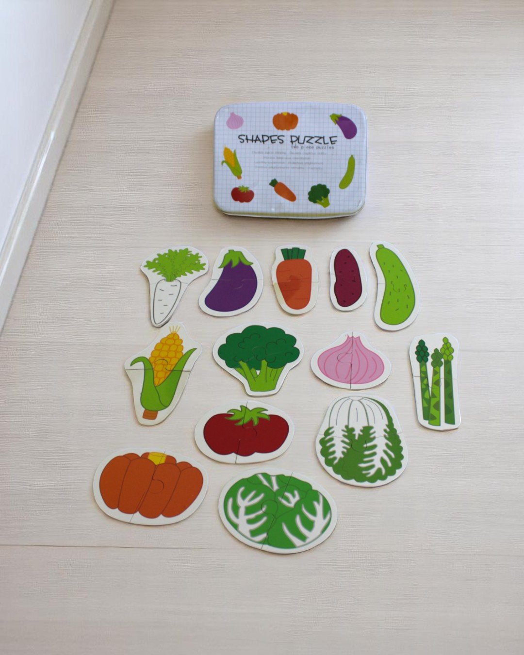26 Puzzle Pieces (Carrot, Corn, Asparagus, Raddish Sweet Potato, Cabbage, Tomato, Brocolli, Onion, Chinese Cabbage, Cucumber, Eggplant, Pumpkin)